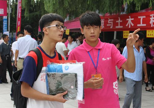 为筹备迎新工作,资土系专门成立了工作组,工作组由学生会成员及15级学生构成,他们分工明确,组织周密:报到处的工作者负责仔细审核新生录取通知书等重要材料,并向新生细心讲解需要注意的细节,外围的工作者则去不同的部门引领新生完成报到的所有程序。工作者们及时有效的答疑解惑也让家长们倍感放心。