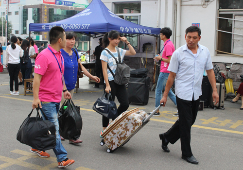 天蒙蒙亮,迎新工作者起了个大早,以最饱满的热情迎接新生的到来。