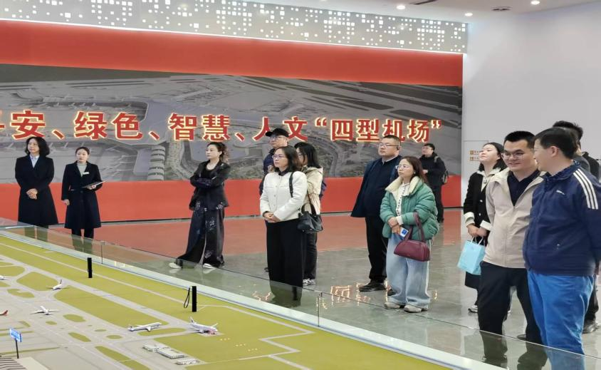 调研期间,教师团队参观了济南机场项目成果展示厅、施工现场及二期改扩建西飞行区工程教学点。通过实地察看、现场讲解与多专业交叉研讨,教师们系统了解了项目在BIM协同设计、智慧工地管理、装配式施工等智能建造技术方面的应用成效。学院相关专业教师与参建单位技术负责人围绕智能建造技术应用场景、行业标准、人才能力图谱等核心议题开展了深入细致的技术交流,进一步凝聚了“以工程实景反哺教学改革”的共识,为学院新专业建设夯实了基础。