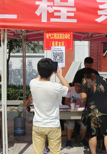 9月10日,机电系迎新工作全面展开。让人耳目一新的是,宣传展板、迎新报到处等地方新增“二维码”,机电系学生会、新闻中心等各学生组织及新生班级均进入“扫码时代”。