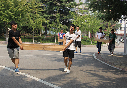 早上,资土系学生会布置迎新点,大家一起抬放宣传板,挂置条幅,搬运篷架,迎接新生的到来。