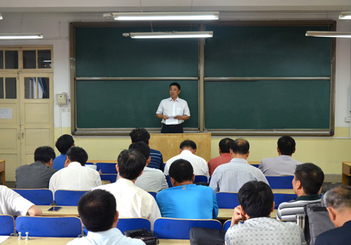 6月28日,机电系党总支书记张建中给机电系全体教师党员上“强化理想信念,争做合格党员”主题党课。他强调,要把“两学一做”落实到强化理想信念上,解决好世界观、人生观、价值观这个“总开关”问题,坚定“三个自信”,补足“精神之钙”,铸牢“党性之魂”;要把“两学一做”落实到发挥党员作用上,所有党员“亮职责、亮承诺、亮实绩”,发挥好先锋模范带头作用。他要求全体教师党员认真领会“两学一做”学习教育要求精神,深入贯彻落实机电系“三个出来”党员旗帜工程,努力做“四讲四有”合格党员,争做“四有好老师”,为山东名校建设、“双一流”建设献智慧、出实力、展形象。(文:刘钦兴 图:纪仕鑫 编辑:杨莹)