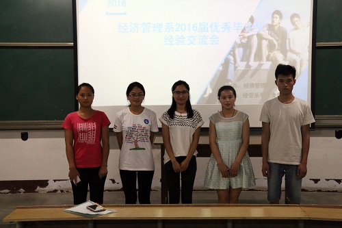 6月18日晚,经管系在1c103举办2016届优秀毕业生经验交流会。优秀毕业生代表范棣、韩金晓、胡柄涵应邀与学弟学妹们分享经验。