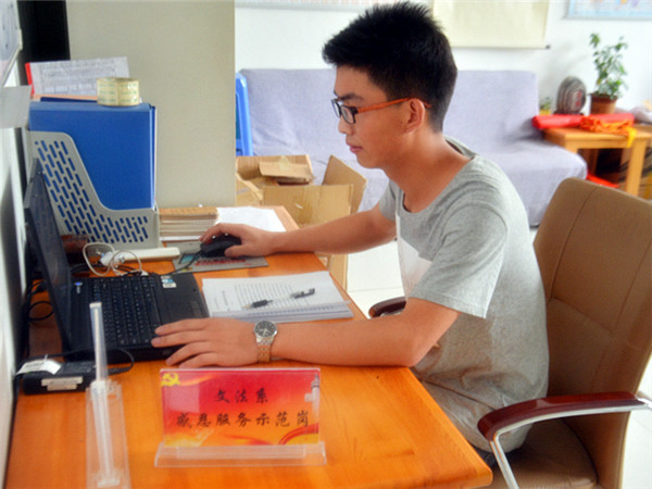 活动开始后,学生党员代表轮流到团总支办公室值班,协助老师及时向毕业生传达老师安排的各项工作,摸清毕业生就业状况,分享就业信息,办理相关手续,做好毕业生与老师之间沟通的桥梁。落实学校和文法系下发的关于“两学一做”的工作计划。充分展现学生党员良好精神风貌,协助做好毕业生就业和安全文明离校工作。(文:李春华 图:王雪 编辑:江晓慧)