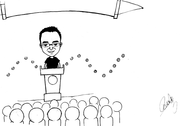 图(2):挺拔的身姿、幽默风趣的谈吐,大会上发言的程家国老师,俨然是新一代的男神,作为资土系团总支书记,又怎一个“帅”字了得!
