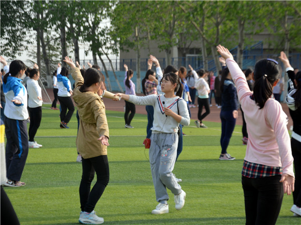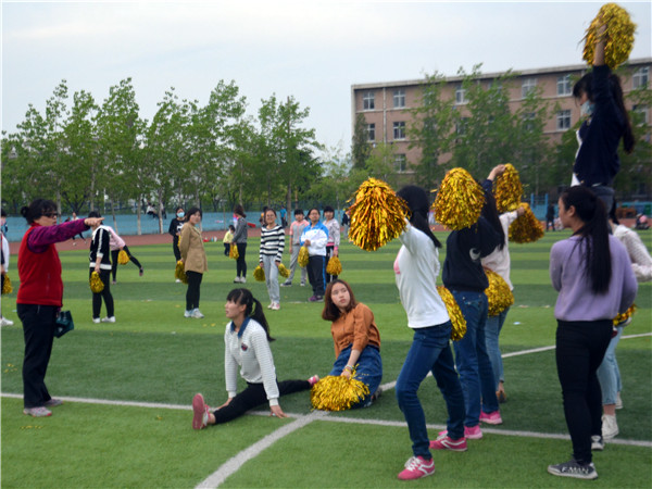 文法系学生工作干部多次亲临训练现场,为同学们加油助威,希望大家齐心协力,跳出自己的风采,舞出文法的魅力。