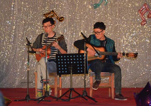 柔美醉人的灯光,激情四射舞蹈秀《shake it》拉开了本次比赛的序幕。舒缓柔情的歌曲《让泪化作相思雨》、旋律优美的《爱爱爱》、动人心弦的《父亲》让现场沉浸在美妙的旋律中,更有浪漫抒情的歌曲《天后》、声乐组合演唱的《旅行的意义》、乐器尤克里里弹唱《失落的沙洲》等精彩表演曲目。第二轮比赛中,二号选手带来的歌曲《金色的麦浪》旋律悦耳动人;五号选手在精彩的魔术表演后,与搭档演唱的歌曲《当你孤单你会想起谁》优美深情;七号选手带来了一段尤克里里的指弹《爱的罗曼史》美妙绝伦;十二号选手的双节棍表演,动作流畅有力,精彩非常;十三号选手使用尤克里里演奏的指弹台湾民谣,旋律优扬。最终,五号选手杨维杰以歌曲《当你孤单你会想起谁》获得冠军。(文:周雪 毕建伟 图:赵文港 编辑:钱方莉)