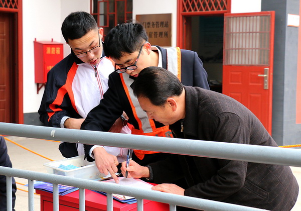 部分志愿者来到万仙楼检票口处帮助工作人员检票,提高了检票效率,加快了游客流动,避免拥堵状况的发生。部分志愿者来到罗汉崖,在工作人员的带领下向上山扫墓人群发放消防安全知识卡片,宣传防火知识并登记来往车辆。