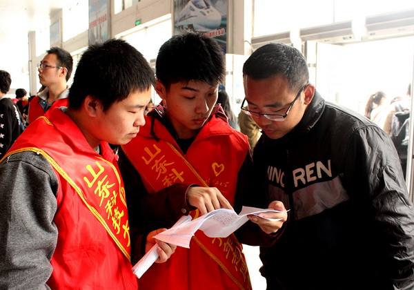 在泰山站售票厅里,志愿者们热情地为旅客解决各种问题。领队尉英坤介绍道:“泰安是旅游名城,小假期吸引很多外来游客,我们为他们介绍这里的美景美食和交通路线,针对部分老人不会使用自动取票机的情况,我们安排志愿者专门守在机器面前,希望老人出行时候得到帮助。”候车厅内,志愿者引领旅客进入相应站台候车并为不方便携带行李的旅客暂时看管行李,他们的服务得到旅客们的称赞和车站工作人员的一致好评。(文:钱方莉 唐迪 图:许梦龙 薛厚年)
