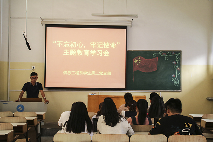 9月24日,信息系召开学生党支部大会,进行“不忘初心,牢记使命”主题教育学习。信息系团总支书记蒲蓬勃、研究生兼职辅导员满忠昂带领学生第一党支部成员于1A305展开学习,专职辅导员高琳带领学生第二党支部成员于3102展开学习。