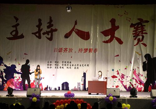 晚上七点,比赛正式开始。本次比赛共分为模拟主持、巧舌如簧、古韵中华以及考验选手综合素质的即兴评述四个环节,在第一环节模拟主持中,二号选手李承远为我们带来了访谈类节目《军旗下的青春》,节目以两位曾在军队服役的同学为蓝本,向我们讲述了两位同学从入伍到退役个人的变化以及对军队的无限留恋。在第二环节“巧舌如簧”中,十位选手随机抽取绕口令并进行了朗读。在第三环节“古韵中华”中,六号选手包振宇与他的搭档为我们深情演绎了《西厢记长亭送别》,凄美的爱情故事与不舍的离别之情令在场观众为之动容。第四环节中,选手们抽取了即兴辩题并进行了即兴评述。经过四个环节的激烈角逐,八号选手王秋红和十号选手毕凤滢获得了本次比赛的三等奖。五号选手魏冰洁和六号选手包振宇获得了本次比赛的二等奖。二号选手李承远摘得了本次主持人大赛的桂冠。