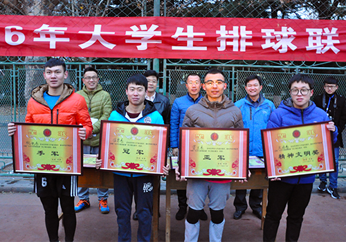 11月22日,由校区、学院团委主办,校区、学院学生会大学生体育联合会承办的“2016年大学生排球联赛”在东校园排球场落幕。校区、学院党委副书记苏同营观看比赛并为获奖集体颁奖。