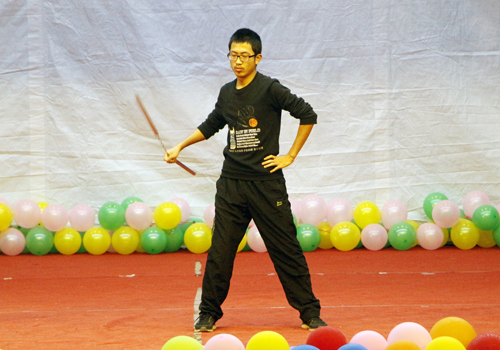 激情飞扬,舞动青春。一场热情俏皮的舞蹈《lie》拉开了整场典礼的序幕。吉他弹唱、诙谐的相声小品、贴切生活的话剧、深情的诗朗诵、唯美的音乐剧无一不展现当代大学生的风采。舞蹈《相思垢》传递着阵阵中国古风,优美的旋律,典雅的舞蹈给广大学生带来无限美的享受,让观众重温古朴之美。由青年法学会带来的《如果没有宪法》,以话剧的形式演绎现代生活的矛盾以及宪法在当代生活中的重要作用。呼吁大家用法律维护自己的合法权益。在劲暴音乐的伴奏下帅气、干练、潇洒的双截棍表演释放着热情,引得观众阵阵欢呼,将活动推入高潮。大学生演讲朗诵协会带来的诗朗诵《三生三世,十里桃花》深情款款,把人带入一种奇幻梦境。