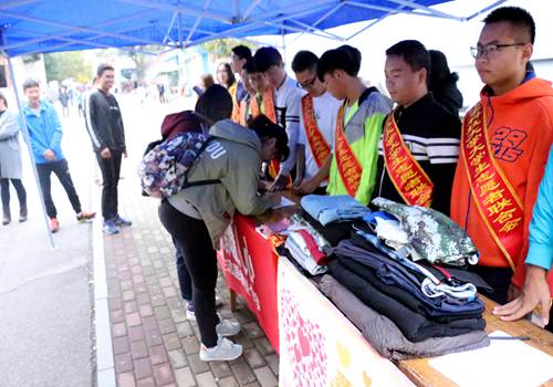 春去冬来,当你增添厚衣服以抵御寒冬之时,当你换上新衣物心中暗喜之时,你可曾想到了一些贫困家庭的孩子,仍用无助恐惧的眼光等待着凉风暗日冬秋。志愿者们以“一件衣物,让山区的孩子不再蜷缩”为主题,通过展板、横幅等方式进行宣传。现场的志愿者们手持旧衣物爱心募捐倡议书,向同学们讲述爱心募捐的重要性。过往同学积极响应,冒着雨把自己穿不下的衣服捐献出来。一些在职老师、退休老师、职工家属等也都纷纷捐出衣物,一位退休老师表示:大学生就应该多举办这种公益活动,不仅能增强责任心更为贫困地区的孩子献出自己的力量。