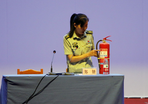 报告伊始,郑警官首先从大学生宿舍安全出发,通过列举部分高校宿舍火灾事例,说明宿舍安全用电的重要性。其次,她通过具体的案例和数据,警示同学们再小的事物也不要忽视它的安全性。再次,她还提醒同学们外出时要提高警惕,注意观察所在区域的安全出口和安全通道,以防发生火灾时,能够迅速安全的撤离。郑警官通过大量案例,并结合自身从警经验,用通俗易懂的语言,讲解了初期火灾的预防与扑救、逃生与自救、灭火剂的种类和性能以及常用灭火器的使用方法等消防知识,引起同学们的积极响应。讲座最后郑妍警官详细讲解了家庭用火及用电注意事项,火灾逃生、自救的基本常识等内容。