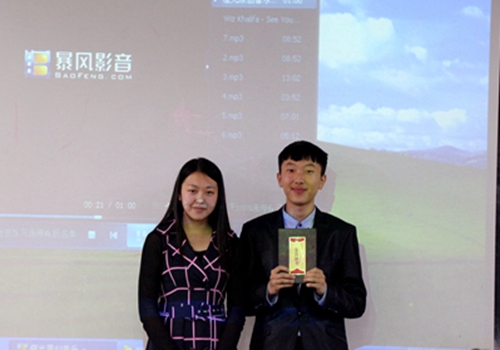下午4点40分,朗诵大赛正式开始。本次大赛的主题是宣扬五四精神,弘扬爱国热情。各位选手就着激昂的配乐,陈词慷慨激昂。选手自己制作了有关五四的app,在象征着革命的鲜红背景中,选手们全情投入,用他们的深情呐喊释放着自身的爱国热情。在充斥着浓浓的爱国情怀的赛场上,观众热血沸腾,细细品味着这一丰盛的精神大餐。最终,来自西校的韩耀辉选手获得一等奖。