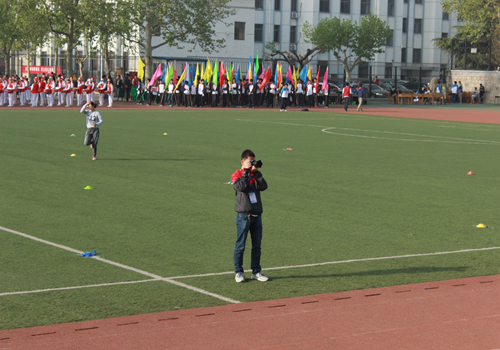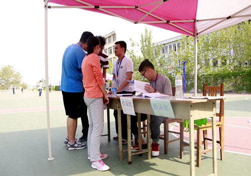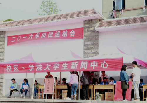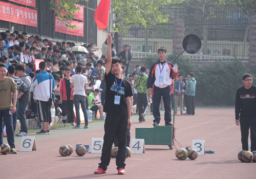 学生会成员坚守在自己的工作岗位,为整场运动会服务着。