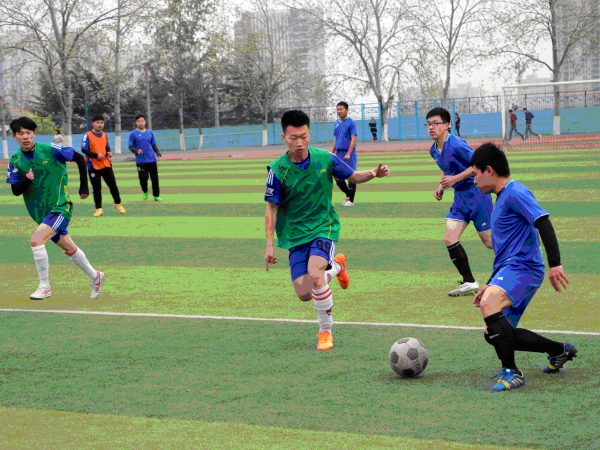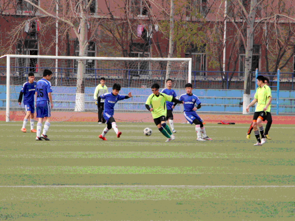 绿茵点亮梦想, 激情舞动青春。由校区、学院团委、体委主办,校区、学院学生会承办的大学生男子足球联赛分别于东、西校园操场如火如荼地进行着。