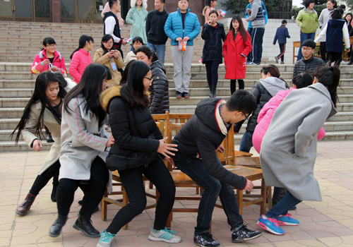 本次活动共有三个项目:抢凳子、三人两足、穿针引线。趣味体育形式新颖,内容丰富有趣,“一二、一二...”整齐的口号体现了我校女生们协调的团结合作,熟练优雅的穿针引线更是展现了同学们深厚的文化内涵。