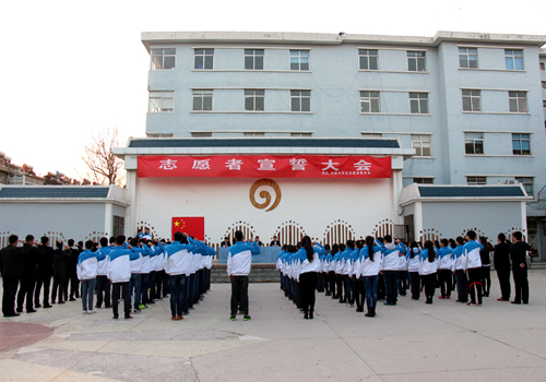 大会一开始,由学生代表——校区、学院学生会主席王传尚与校区、学院学生会副主席兼大学生志愿者联合会主席李威发言。随后,志愿者代表刘钟灵进行了发言并在张宝麟同学的带领下,全体志愿者举起右手,庄严宣誓。浩大的声势振奋人心,志愿者们用呐喊表达了自身对志愿者工作坚定不移的决心。最后,王衍国老师表明了对志愿者工作的支持,并对今后志愿者的工作和发展提出了指示,表现了校区、学院团委对本次活动的高度重视。