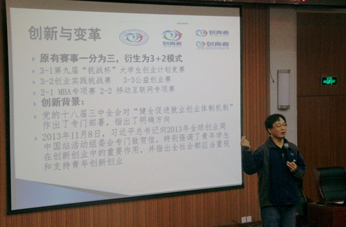 报告伊始,陈永磊回顾了“创青春”的创新与变革,结合自身经历讲述了参加创业大赛的重要性和可行性。继而陈永磊指出,大学生在创业和实践时要注重团队合作,尊重细节,要跨学科、跨专业进行交流,强调每一个产品都有自己的生命周期,并鼓励同学们敢于抓住机遇积极应对挑战。从主题鲜明、结构合理,内容充实、重点突出,论证严谨等五个方面详细讲解了创业计划书的撰写要求。最后陈老师向同学们仔细解读了大学生创业及创业准备相关事项。