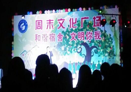 根据校区、学院加强内涵建设工作安排,为加强大学生与教宿管理人员之间的相互沟通与了解,以“舍风”带“学风”,更好的促进学生处“三风”建设工作开展,4月18日晚,由学生处教宿管理中心主办,经管系团总支与学生会承办的以“和谐宿舍,文明你我”为主题的周末文化广场在西校园礼堂前顺利举办。