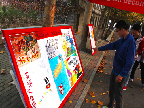 10月23日下午,由校区(学院)团委主办、校区(学院)学生会承办的“英语活动节—海报设计大赛”投票活动在小篮球场旁举办。
