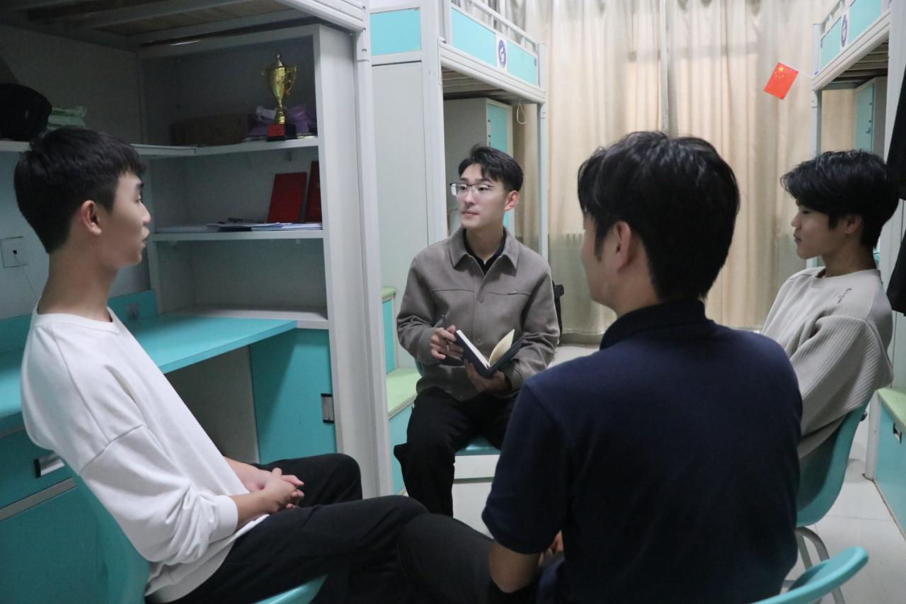 午后,王一深入学生宿舍,与同学们进行常态化谈心谈话,实现学生成长需求的前置干预与有效回应。“老师,班级篮球赛马上要开始了,同学们报名很积极!”他倾听着同学们的心声,耐心解答同学们在日常生活和校园文化建设等方面的问题,在轻松融洽的氛围中,他既掌握了同学们真实的生活状态和内心想法,也用真诚的关怀赢得了大家的信任。