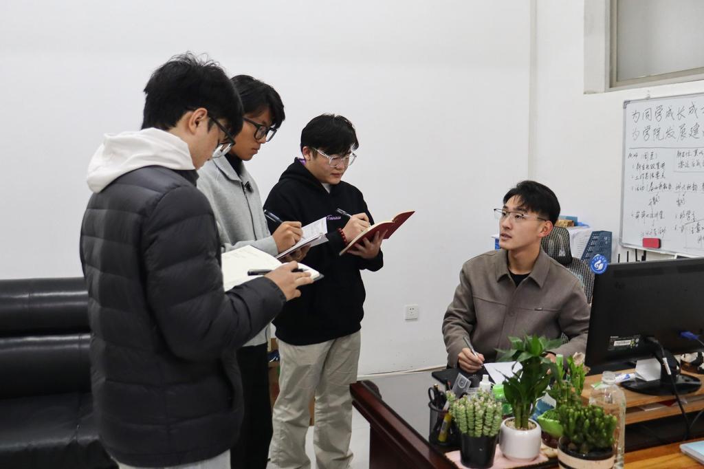 夜晚的办公室里,王一常常会和学生会的同学们谈心谈话。他耐心倾听同学们的想法和诉求,细致记录同学们的建议,了解掌握学生会工作的实际状况。“希望一届届的同学们能够守正创新、堪当重任,希望我们的学生会能够凝心聚力、蓬勃发展。”王一曾是资源学院第二十四届学生会主席,自担任辅导员以来同样负责学生会的指导工作,正是长期从事学生会工作积累的丰富经验,以及对同学们真诚包容的工作态度和亦师亦友的真挚情感,让他对学生会有着深厚的情感,在工作实践中始终与同学们站在一起,将学生会打造成为了服务同学、助力成长的青春阵地。