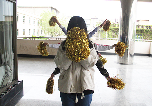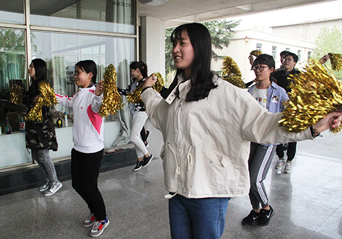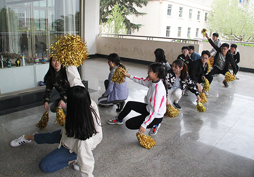 4月3日下午,资土系学生会文艺部于岱宗餐厅二楼进行啦啦操的编排与训练。
