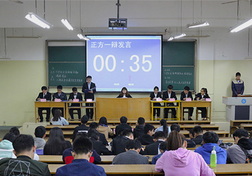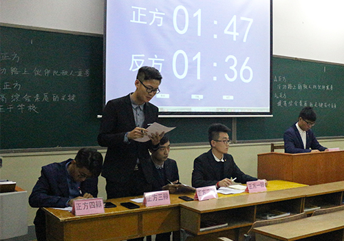 本场辩论赛围绕“成功路上的伙伴和敌人谁更重要”等4个辩题展开辩论。比赛开始,双方一辩用具有高度概括性的陈述为本场辩论开篇陈辞,推动比赛快速进入正题。紧接着双方二辩进行一对一攻辩,不断向对方抛出问题,双方灵活的思维和缜密的逻辑推理,不时赢得场下阵阵掌声,同时也把比赛渐渐推向白热化。自由辩论环节将全场气氛带入高潮,快速的问答不仅体现了选手的反应能力,也考验了选手的表达能力,双方毫不相让,不给对方喘息的机会。总结陈词环节,双方四辩各自针对对手逻辑上的漏洞逐一回击,为赢得比赛做最后努力。(文:杨乃印 图:张浩)
