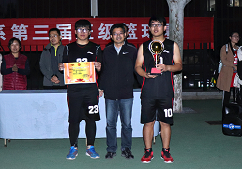 比赛结束,资土系党总支副书记兼副主任朱景星、辅导员张运忠、孙运表、洒艳、张裴和鲁月等老师分别为本次班级篮球赛获得名次班级颁奖。(文:陈钰晓 高梓淇 图:彭衍嵩 王嘉伟)