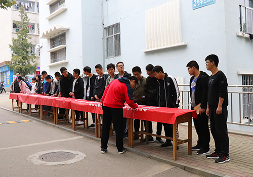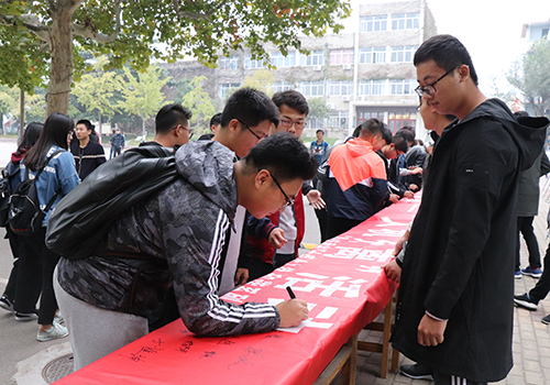 10月17日下午,资源与土木工程系第二届“泰山我敢当”大学生自律·和谐系列活动之人机分离签名活动在二号宿舍楼西侧举行。
