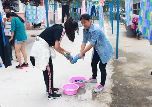母女齐上阵,新发的床单被罩还是让它接受一下清水和阳光的洗礼吧。
