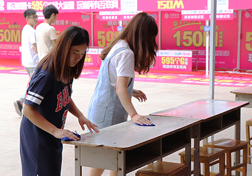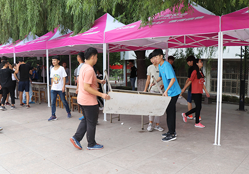 在准备工作中,学生会各干部紧张而忙碌地为迎接新生布置会场,从帐篷的领取到搭建、桌椅的借取到摆放,迎新所需的各种大小物品,一件件被大家摆放到规定地点。大家擦拭桌椅、清洁地面,积极为新生们营造舒适干净的环境。学生会干部们分工明确、积极配合,将工作进行得有条不紊,以饱满的热情期待新生的到来。目前,各项迎新工作准备就绪,等待新生的到来。(文:吴绍娟 刘永康 图:刘永康)