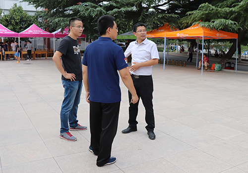 9月8日,资源与土木工程系为迎接新生筹备最后的迎新工作,系党总支副书记朱景星、团总支书记程家国、学生党支部书记孙运表,学生会秘书长刘绪峰等老师到迎新现场检查最后的准备工作。