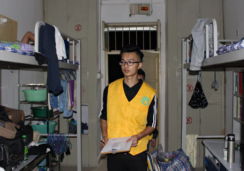 熄灯前15分钟,晚检一组成员在宿舍一楼大厅集合,带队组长首先向小组成员布置工作任务,并详细说明特殊情况的处理方法。随后,队员们一丝不苟地对每一个宿舍进行违禁物品及晚归人员的检查。经检查,宿舍内无学生使用违禁电器,绝大多数同学都安全到校。检查完毕后,小组成员返回集合地点,将检查情况汇总给带队组长。最后,带队组长总结检查工作的不足,提出改进措施。(文:吴绍娟 图:逄颜恺)