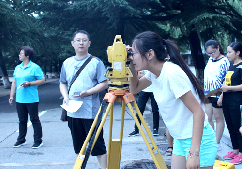 7月16日,资源与土木工程系在东校礼堂门前进行第九届山东省大学生科技节暨第十一届“南方测绘杯”山东省大学生测量技能大赛选拔,此次选拔由测绘教研室张纯连老师负责,测绘专业21人参加。