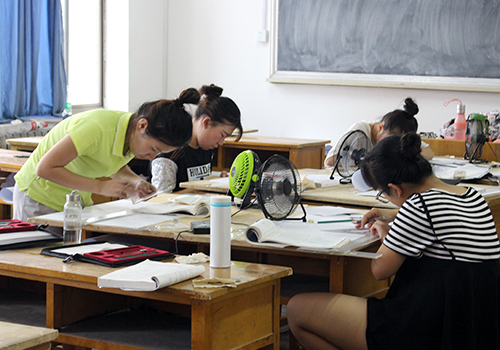 在指导老师石朝霞的统一培训下,造价专业的学生明确了绘图的要求与标准,包括纸张大小、尺寸比例、用笔型号及线条粗细等。随后,同学们迅速投入到紧张的图纸绘制中。在制图室近35度高温考验下,同学们废寝忘食,认真画好每一张图。面对每一张图纸,同学们都认真严谨,一丝不苟地画着每根线条,同时,老师亲自指导,为同学们教授画图技巧,耐心解答他们在实际绘图中遇到的问题,使学生的绘图实力得到大大提升。