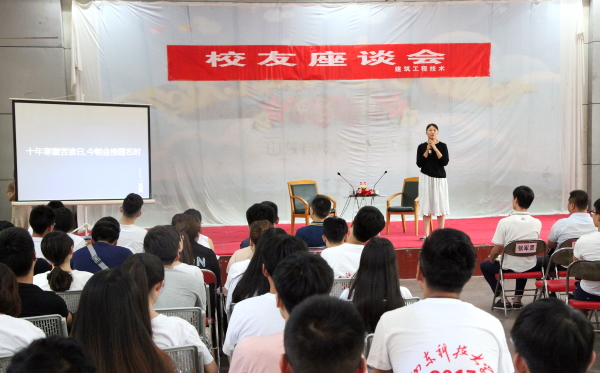 6月19日,资源与土木工程系举办辅导员寄语暨校友座谈会,山东天元装饰工程有限公司副总经理邢冬冬、山东三箭集团建设股份公司项目助理王森、泰山区城管局岱庙执法中队辛鑫、泰安市春蕾营业厅经理刘彬、山东科技大学硕士研究生张军贤与即将步入社会的2017届建筑工程技术专业毕业生座谈,系团总支书记程家国,辅导员张田参加座谈并寄语毕业生。