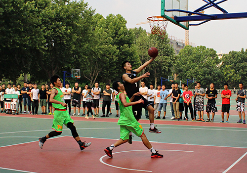 三步上篮,势不可当!对手围攻也阻挡不住我们进球的脚步。