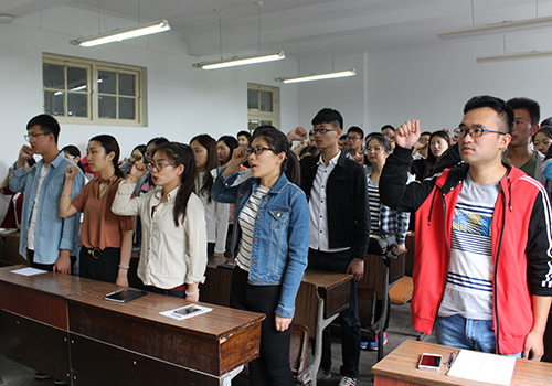 在活动一开始,孙运表首先向同学们强调了毕业后组织关系转接的注意事项并宣读了有关规定。接着,他组织毕业生党员签署了《毕业生党员转接组织关系承诺书》。随后,在刁广东同学的领誓下,全体毕业生党员重温了入党誓词。