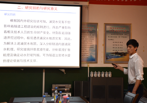 伊始,王以功教授致辞,对各位专家百忙之中来到学校参加硕士研究生答辩表示感谢,他强调,学校历来重视研究生培养,研究生答辩是研究生培养质量把关的重要一环,希望各位专家严格把关。随后,答辩会开始,王可用主席强调了答辩要求,希望6位同学放松心态,将所学、所用及自己独到的见解清晰地阐述出来。研究生吕荣山、王天天、张军贤、白云、许垒、胡忠经分别汇报了各自的研究论文《基于解析法的深埋铁路隧道二次衬砌支护时机研究》、《基于极限平衡法与FLAC3D的滑坡稳定性分析及治理措施研究》、《玻璃纤维水泥浆液岩溶隧道动水注浆封堵机理及应用研究》、《深基坑支护中钢支撑轴力影响因素及其控制技术研究》、《水泥基-玻璃纤维浆液在岩溶隧道注浆堵水加固工程中的应用研究》和《深基坑围护桩嵌固深度及其优化研究》。随后,答辩委员会专家针对每一个人的论文进行了质询,提出相关问题,指出质疑,各位研究生根据所提问题进行了现场回答。经过答辩委员会讨论及综合投票表决,吕荣山等四位同学全票通过论文答辩;建议学位委员会授予硕士学位。