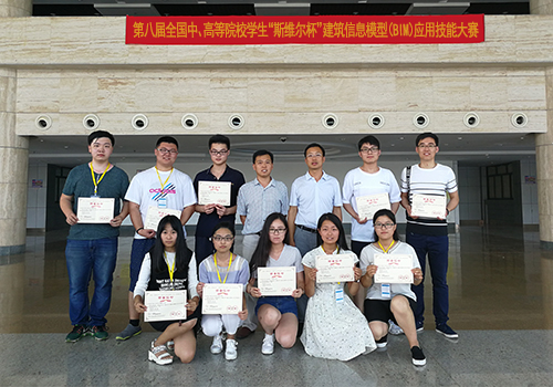 2017年5月20日至21日,由中国建设教育协会主办,住建部工程管理和工程造价学科专业指导委员会、全国住房和城乡建设职业教育指导委员会指导,深圳市斯维尔科技股份有限公司、浙江理工大学和吉林建筑大学承办的第八届全国中、高等院校学生“斯维尔杯”建筑信息模型(BIM)应用技能大赛中,我系李因旭、唐迪、李云浩、王洪飞、郭新丽等五名同学组成的“至上队”(指导老师尹发利)获得《工程管理专项》一等奖、《工程设计专项》以及《绿色建筑分析专项》二等奖、《工程造价专项》三等奖;贾颢晨、程亚萍、李兆灿、吴凯丽、廉梳荷等五名同学组成的“设计小神队”(指导老师:贾宏俊、刘琦华)获《工程管理专项》及《绿色建筑分析专项》一等奖、《工程设计专项》及《工程造价专项》三等奖。