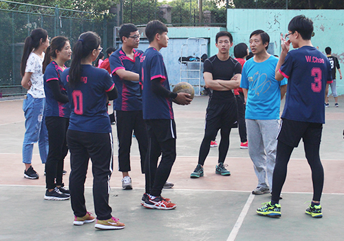 图(5):老师正在悉心的总结上一场比赛的得与失。