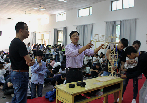 5月9日下午,由校区团委主办、资土系承办的结构设计大赛初赛正式开始。资土系团总支书记程家国、辅导员老师尹发利到现场指导。