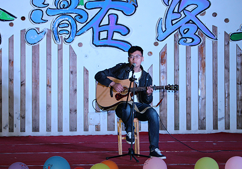 图(5)轮滑英雄多才多艺,一曲南方民谣合着吉他,送给各校的轮滑爱好者。