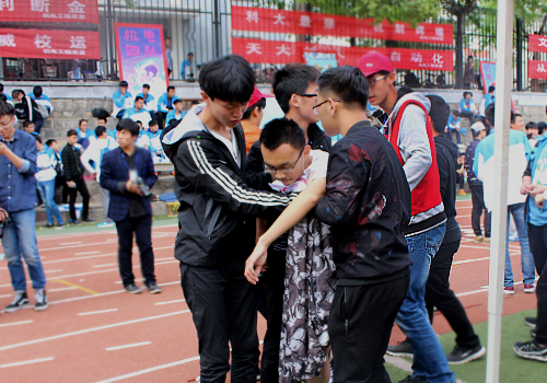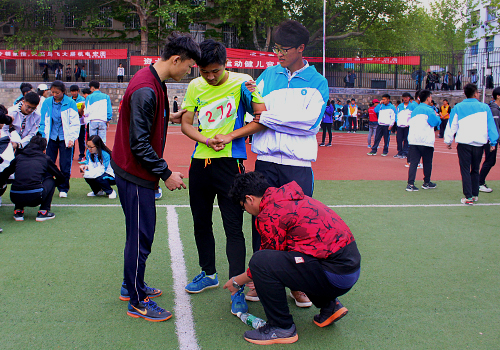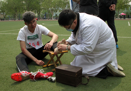 (6)校医为受伤的他包扎伤口。即使受伤也无所畏惧,勇敢前行,这不正是顽强拼搏的运动精神么?(文:刘晓凤 图:单坤阳)
