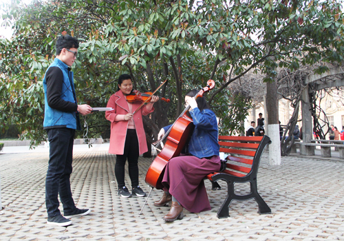 大提琴的浑厚和着小提琴的悠扬,两琴和鸣,乐音和谐,潺潺流淌着春天最华美的乐章。