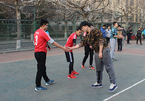 “一、二、三,加油!”赛前响彻云霄的呐喊为自己打满底气,赢球,我们志在必得。